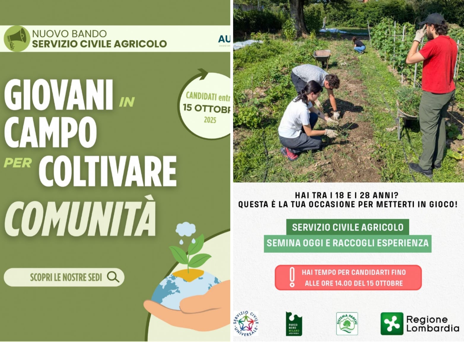 Sono ancora aperte le candidature al Bando del Servizio Civile Agricolo, sia per Regione Piemonte sia per Regione Lombardia.