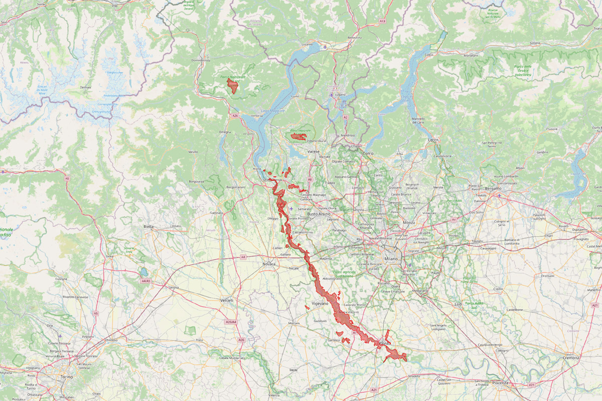 - il fondamentale ambito di connessione tra tali aree protette che si estende sino al confine con il territorio svizzero, includendo l’ambito perilacuale, lombardo e piemontese, del Lago Maggiore. Qui ritroviamo numerose aree protette, quali: