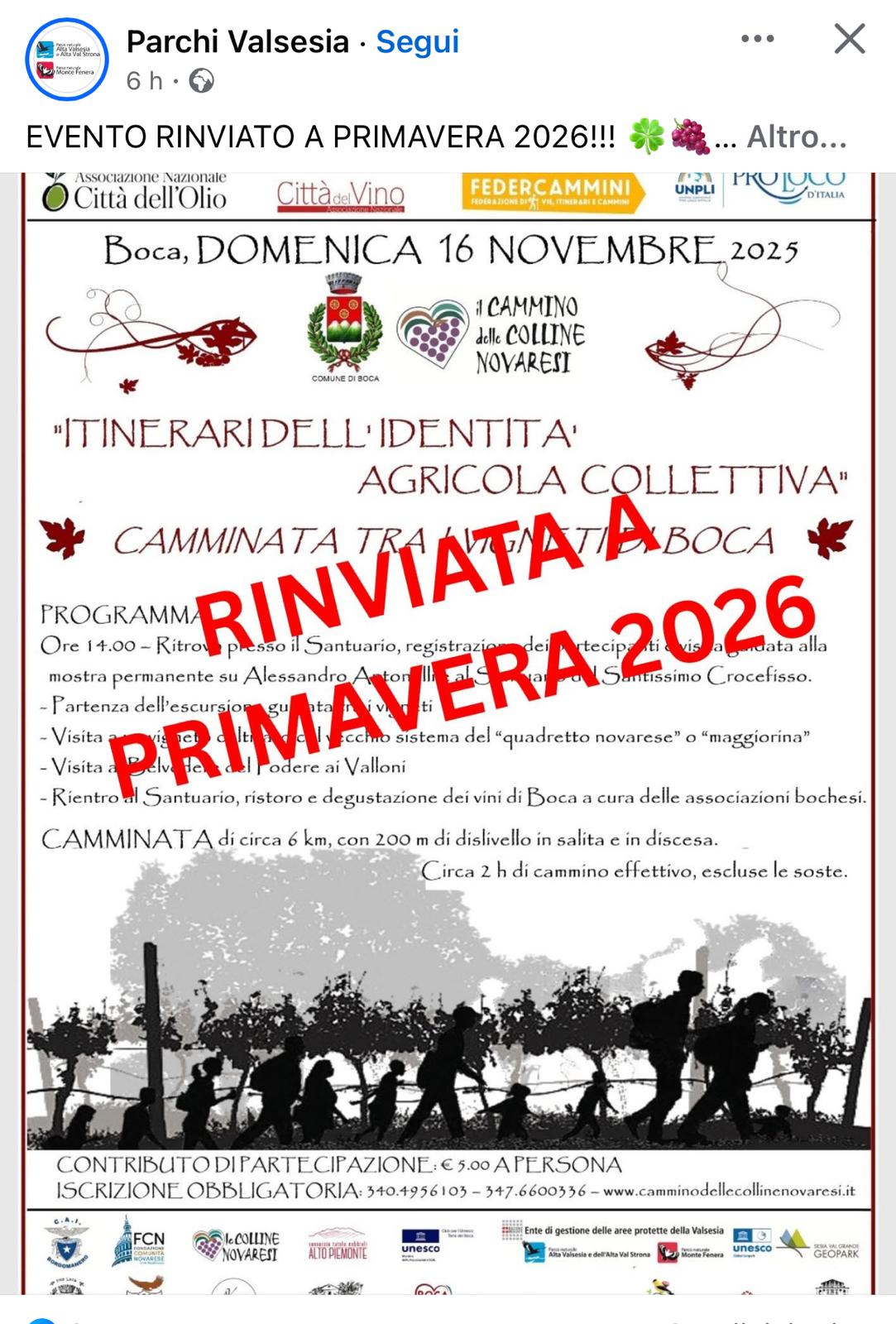 Domenica 16 novembre, con ritrovo presso il Santuario di Boca, sarà possibile partecipare ad una camminata per scoprire i dintorni di questo luogo suggestivo.