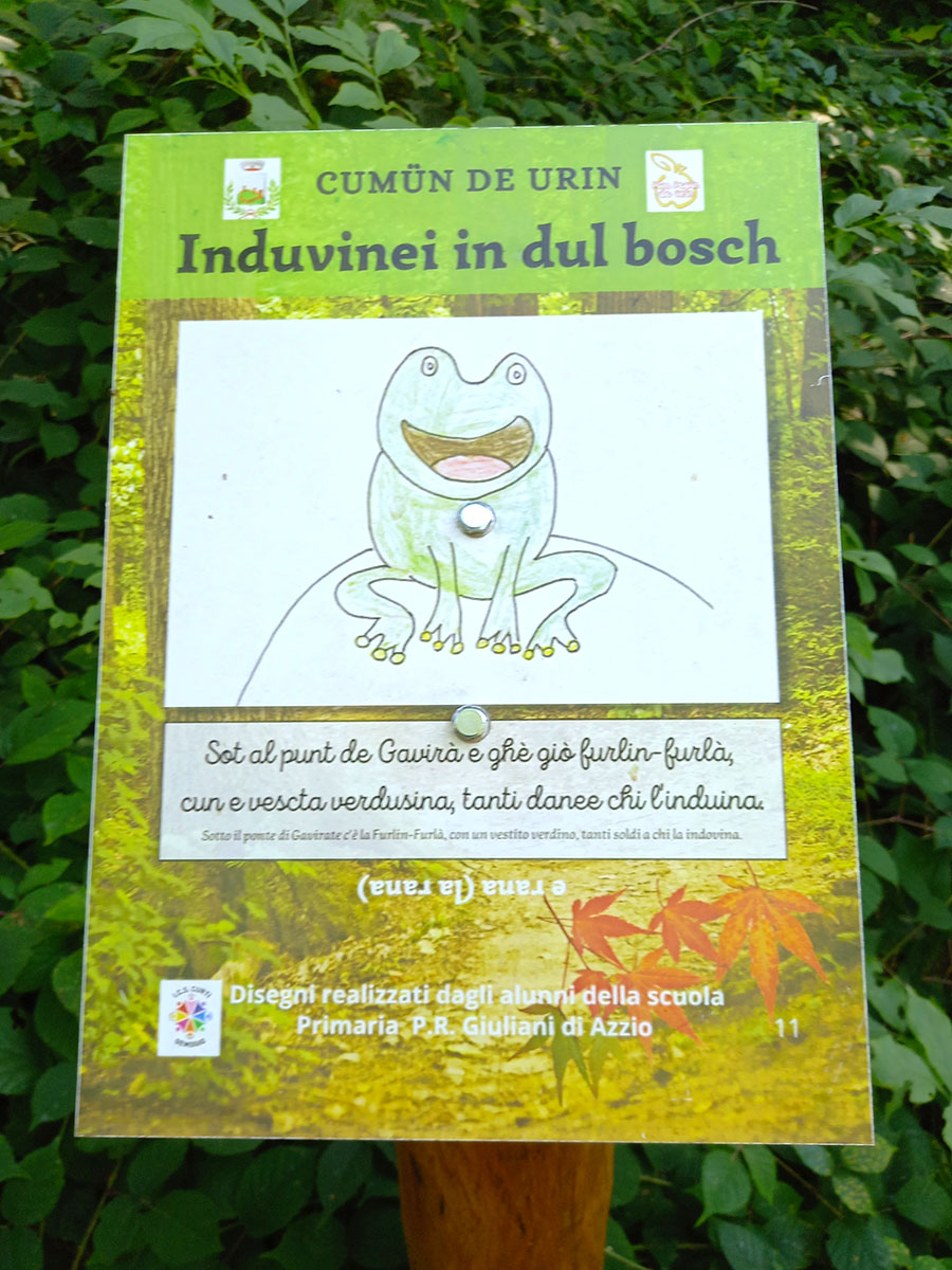 Per raggiungere la Rocca di Orino si percorre per 800 m il “Sentiero degli indovinelli” (Induvinei in dul bosch)