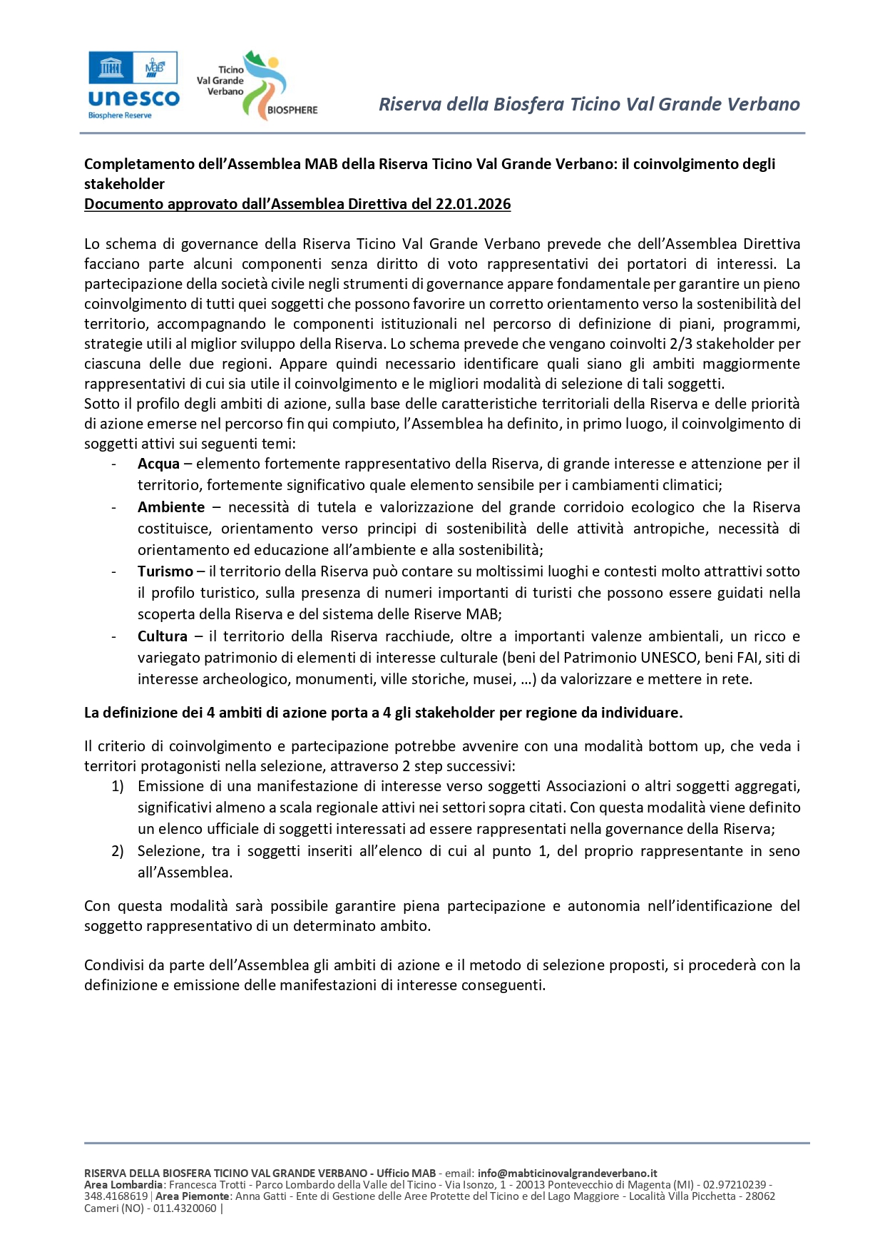 - L'emissione di una manifestazione d'interesse, attraverso la quale si andrà a definire un elenco ufficiale di soggetti interessati ad essere rappresentanti nella Governance della Riserva