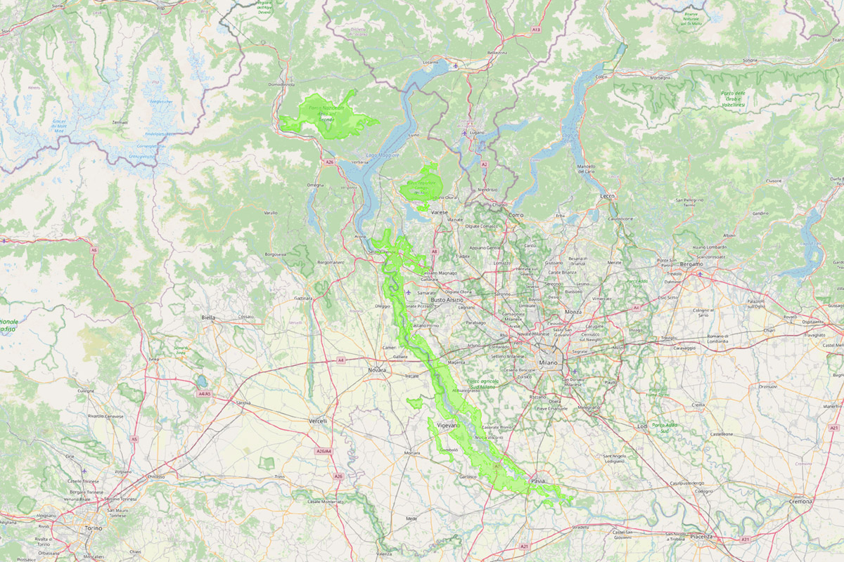 - il fondamentale ambito di connessione tra tali aree protette che si estende sino al confine con il territorio svizzero, includendo l’ambito perilacuale, lombardo e piemontese, del Lago Maggiore. Qui ritroviamo numerose aree protette, quali: