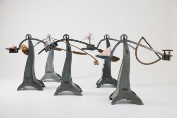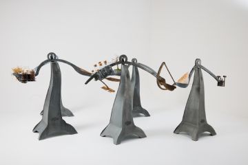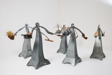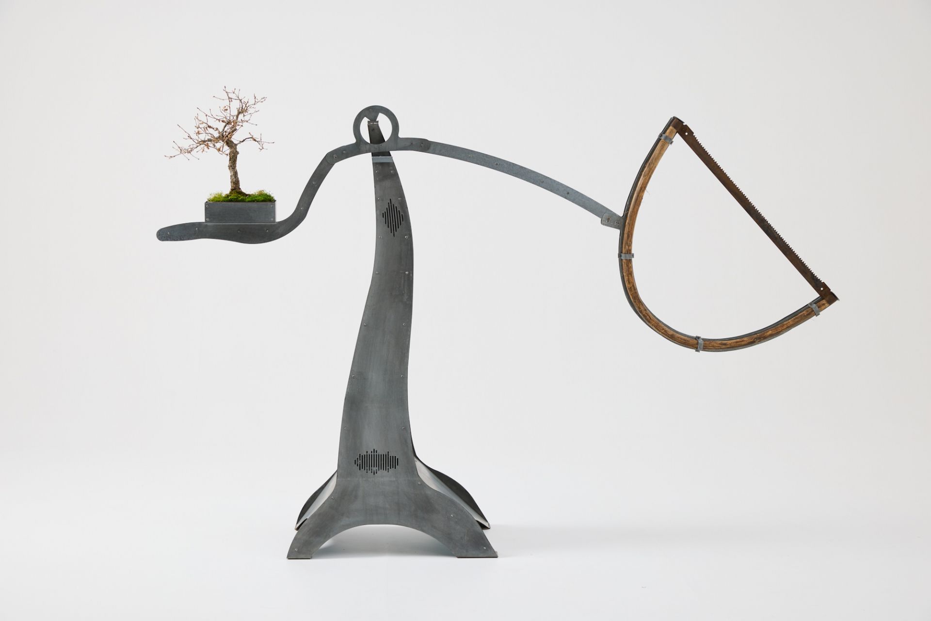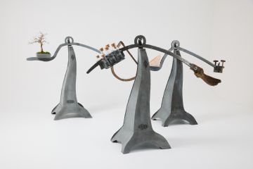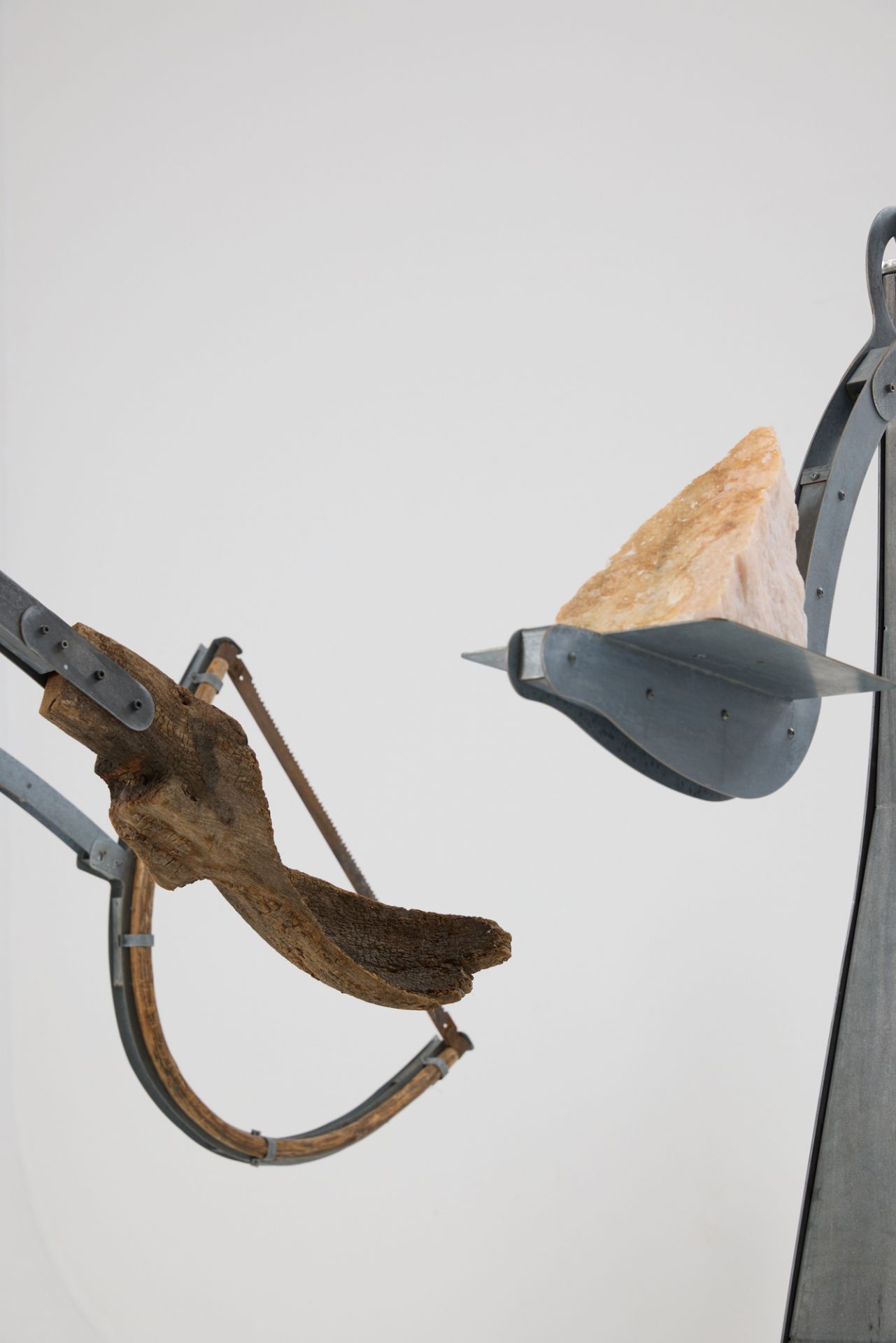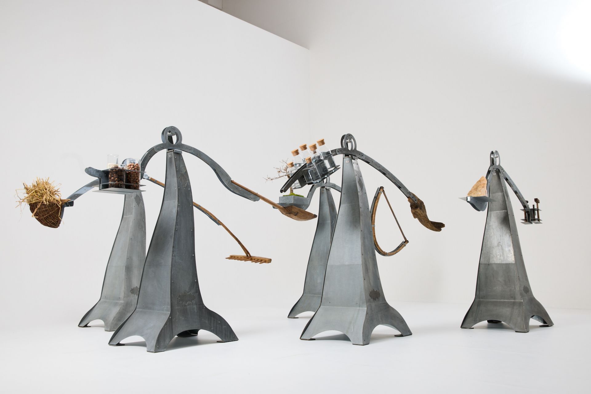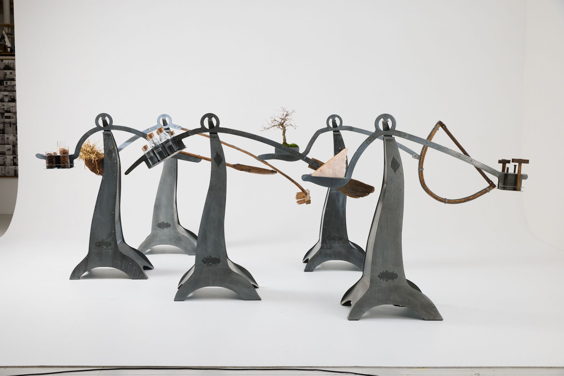 LA MOSTRA, 7 INSTALLAZIONI TRA PESI E CONTRAPPESI NATURALI E ANTROPICI – 7 grandi bilance, con grandi braccia in movimento che portano esperienze umane e valori naturali e che raccontano le comunità tra Lombardia e Piemonte, tra ambiente e creatività, natura e ingegno umano. E' questo il cuore della mostra, realizzata dall’artista Claudio Ballestracci. “La bilancia non funziona soltanto come simbolo. È una macchina che rende visibile la natura relazionale del reale: ogni peso è tale solo in rapporto a un contro-peso; ogni misura implica una reciprocità. L’equilibrio emerge esclusivamente da una dinamica di compensazioni. In questo senso – sottolinea l’artista- l’opera si colloca in una linea di pensiero che rifiuta la visione dell’ecosistema come struttura statica. L’installazione traduce questa consapevolezza in una grammatica materiale”. E allora su un piatto della bilancia compaiono strumenti agricoli primordiali, il lavoro sulla terra, la fatica dell’uomo. Sul piatto opposto, zolle, pietre, sementi, acqua raccolta da laghi e fiumi, porzioni di vegetazione. La biosfera non è contemplazione, ma sostanza attiva”.
