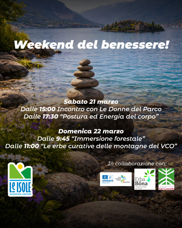 Questo weekend, sabato 21 e domenica 22 marzo, presso il Centro Commerciale Le Isole a Gravellona Toce si terranno alcuni eventi come focus quello di far vivere un’esperienza rigenerante tra natura, corpo e mente.