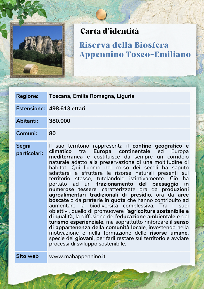 - Appennino Tosco-Emiliano (Toscana - Emilia - Liguria) prima designazione nel 2015 comprendente Toscana ed Emilia, estensione alla Liguria nel 2021 (Apre il link in una nuova scheda)